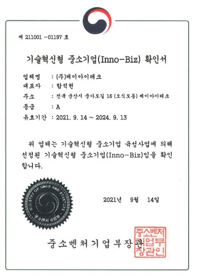 기술혁신형 중소기업 확인서