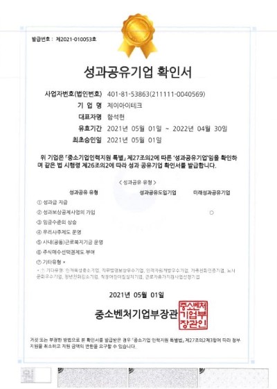 성과공유기업 확인서