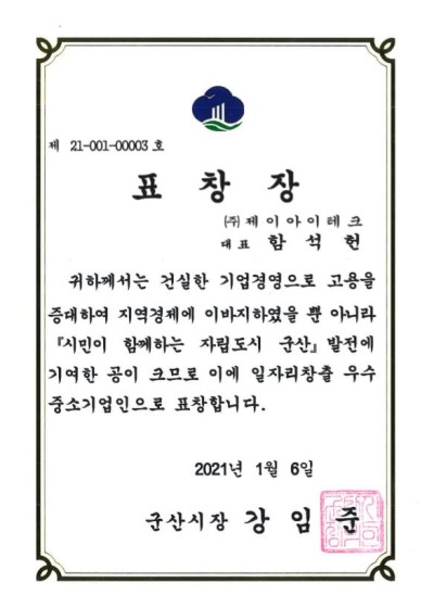 군산 시장 표창