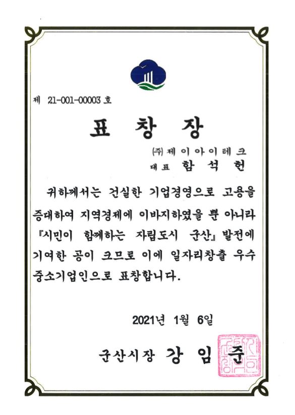 기관인증 군산 시장 표창 최고관리자 2026-03-10 15:51:55 38 본문 군산 시장 표창 목록 이전글 전라북도 도지사 표창 다음글 기업부설연구소 인정서 댓글 0 등록된 댓글이 없습니다.