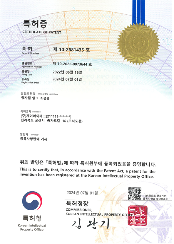 특허권 특허 제 10-2681435호 최고관리자 2026-03-10 16:05:42 36 본문 특허 제 10-2681435호 목록 이전글 특허 제 10-2681437호 다음글 PCT 국제특허출원: PCT/KR2022/013805 댓글 0 등록된 댓글이 없습니다.